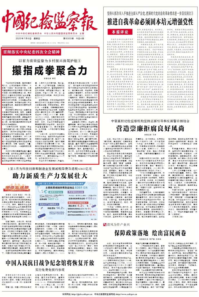 《中國(guó)紀(jì)檢監(jiān)察報(bào)》2025年7月6日 第1版
