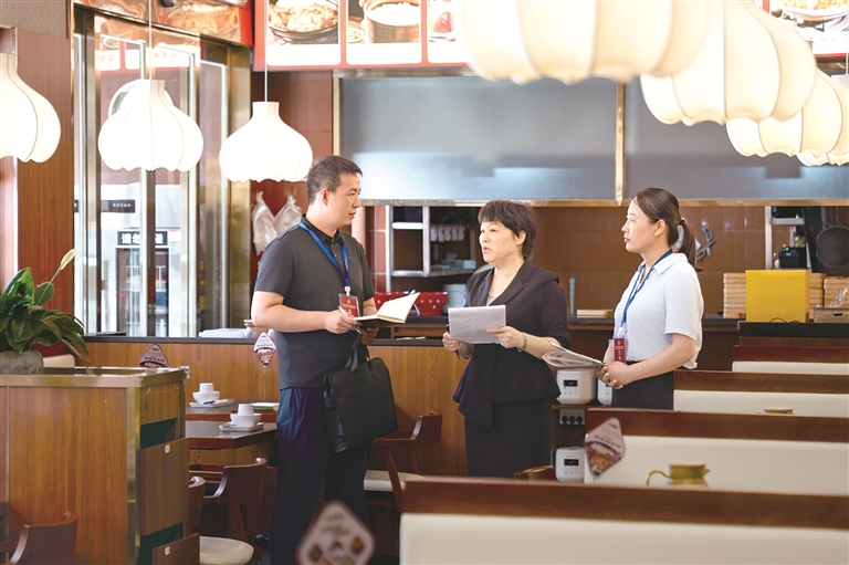 河南省漯河市郾城區(qū)紀(jì)委監(jiān)委圍繞公款吃喝、違規(guī)接受管理服務(wù)對(duì)象宴請(qǐng)等違反中央八項(xiàng)規(guī)定精神問(wèn)題開(kāi)展監(jiān)督檢查,一嚴(yán)到底狠剎歪風(fēng)邪氣。圖為近日,該區(qū)紀(jì)檢監(jiān)察干部在轄區(qū)某飯店了解相關(guān)情況。王曉 攝