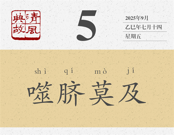 楊伯峻認(rèn)為,“噬齊”是當(dāng)時(shí)的俗語。齊,通“臍”,即肚臍。“噬齊”即用嘴去咬自己的肚臍,意謂夠不著,咬不到。后世則以“噬臍”或“噬臍莫及”為典,比喻再后悔也來不及了。葉夢(mèng)得詩(shī)《懷西山》:“平生幾濡首,末路多噬臍。”