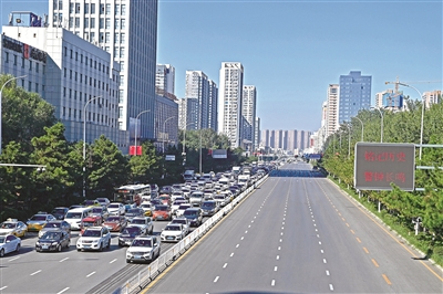 圖③:車輛在沈陽崇山中路停車鳴笛。 新華社記者 周華 攝