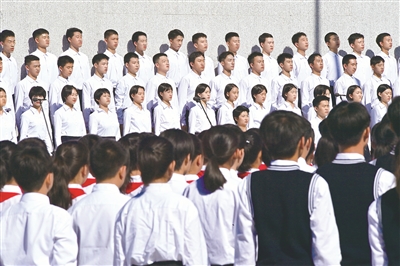 “白山黑水齊出動,復興我中華……”殘歷碑廣場上,80名青年學生鏗鏘有力的朗誦聲,讓《送戰(zhàn)友編歌壯行保國家》《黑水白山•調寄滿江紅》《濱江抒懷》三首分別由東北抗聯英雄楊靖宇、趙尚志、趙一曼當年寫下的詩詞響徹在沈陽“九•一八”歷史博物館上空。