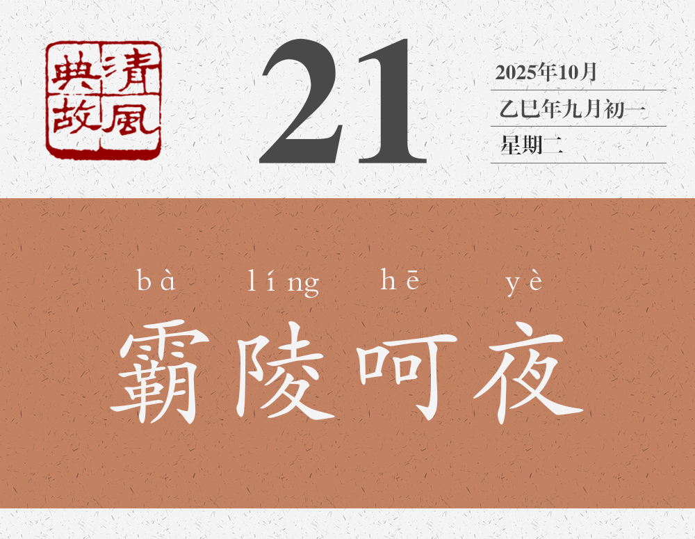 故事是說,有一天晚上,李廣帶著一名隨從,和別人一起去田野間飲酒,回來的時候,已經(jīng)是深夜了。到了霸陵亭,正遇上霸陵縣尉。碰巧的是,霸陵縣尉也醉了,于是呵斥李廣止步。李廣的隨從就說:“這是以前的李將軍。”縣尉一聽,更來氣了:“就算他是現(xiàn)在的李將軍也不得夜行,何況他是以前的李將軍呢?”無奈之下,李廣只能和隨從一起住在霸陵亭下。