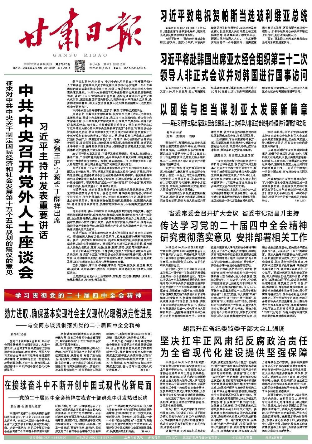 《甘肅日報》2025年10月25日 第1版