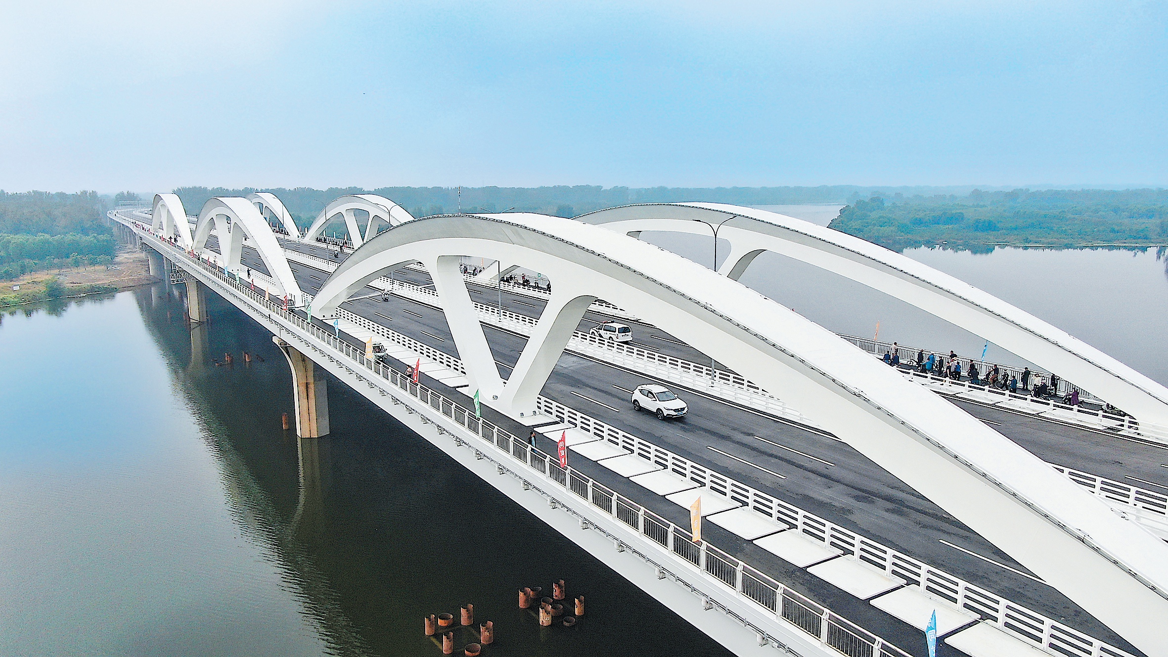 緊盯京津冀交通一體化建設(shè)中的“卡點”問題,北京、河北兩地紀委監(jiān)委駐交通運輸部門紀檢監(jiān)察組聯(lián)動監(jiān)督打通梗阻,確保廠通路潮白河大橋項目如期完工投用。圖為貫通河北大廠縣和北京城市副中心的廠通路潮白河大橋。北京市交通委 供圖