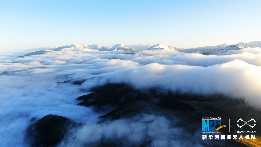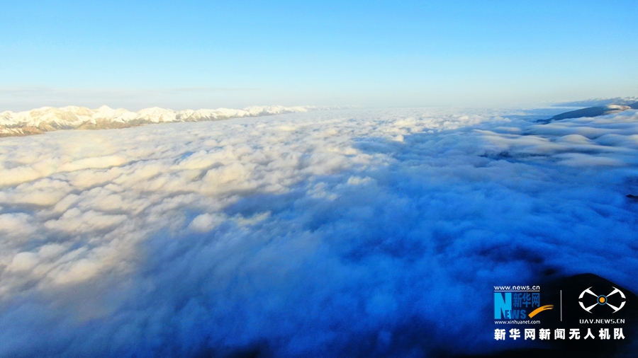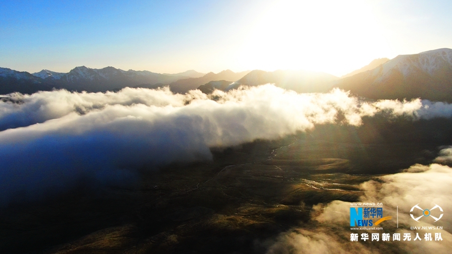這是8月18日在甘肅省肅南裕固族自治縣境內(nèi)拍攝的祁連山云霧景觀。當(dāng)日,祁連山區(qū)云霧繚繞,從高空俯瞰,如波濤洶涌起伏,與雪山、藍(lán)天相互輝映,美不勝收。(飛手:武雪峰 攝影:安維斌)