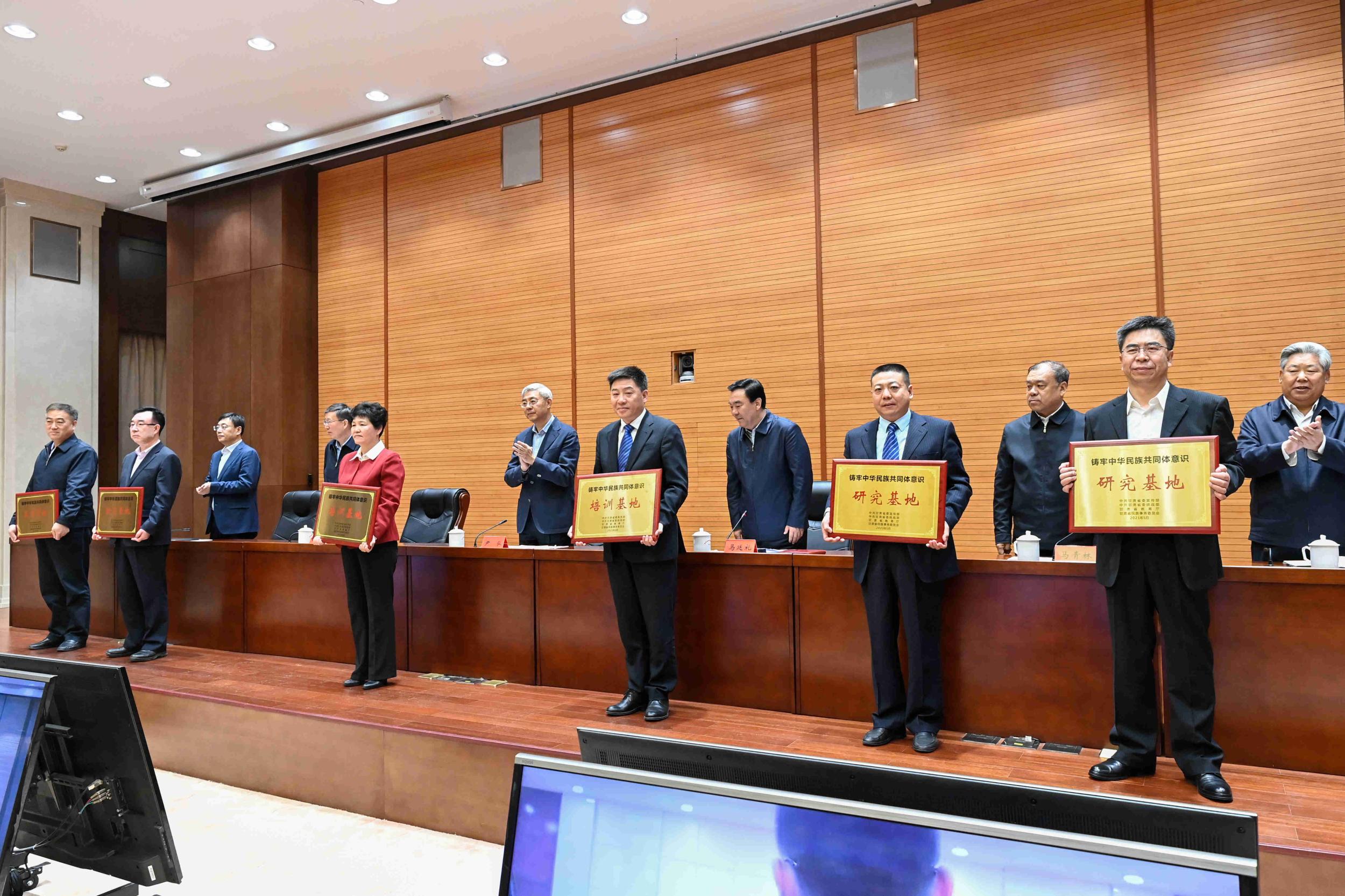 會上,為首批甘肅省鑄牢中華民族共同體意識教育基地、培訓(xùn)基地和研究基地授牌。