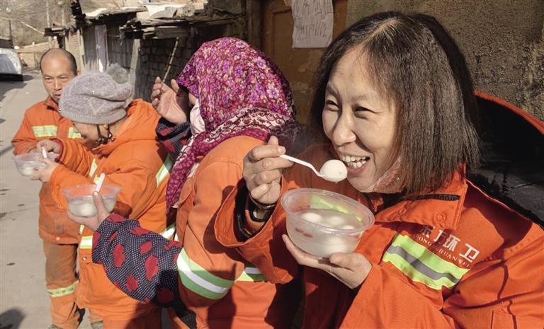 活動(dòng)中,志愿者們還搭鍋煮湯圓?,F(xiàn)場(chǎng)兌獎(jiǎng)的居民和駐守干部、社區(qū)網(wǎng)格員、老黨員們共同品嘗著美味的湯圓,在寒冷的天氣里,讓大家暖身更暖心。