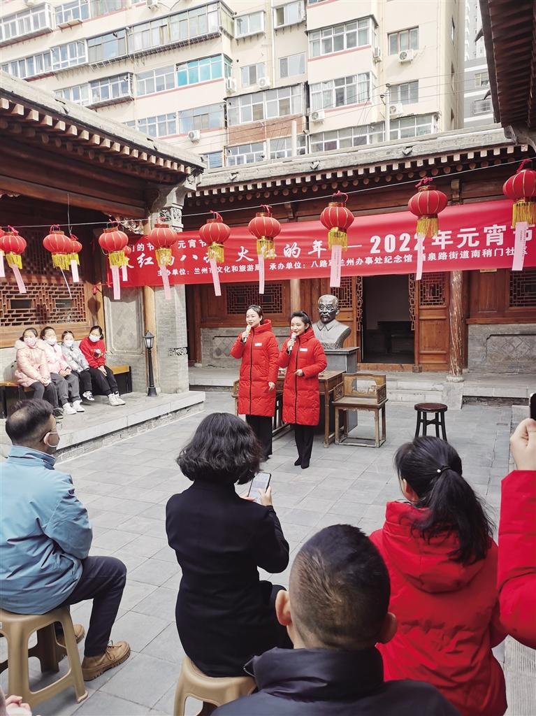 2月14日,在喜迎元宵佳節(jié)之際,由蘭州市文化和旅游局主辦的“火紅的八辦火紅的年 民族團(tuán)結(jié)一家親”——2022年元宵節(jié)主題活動(dòng)在位于酒泉路的八路軍蘭州辦事處紀(jì)念館舉行。來(lái)自酒泉路街道南稍門(mén)社區(qū)、南關(guān)民族風(fēng)味一條街的市民代表與蘭州八辦工作人員及紅色小志愿者近百余人齊聚一堂,共同“憶黨史、話(huà)冬奧、猜燈謎、慶元宵、唱紅歌”。