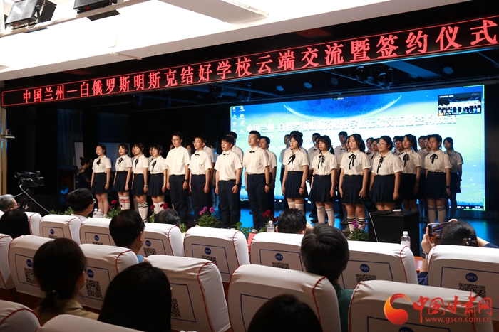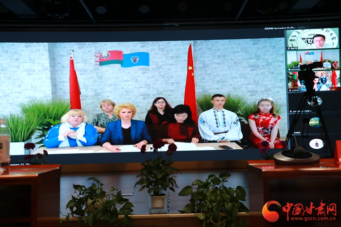 在蘭州外國語高級中學舉行的此次“中國蘭州—白俄羅斯明斯克結好學校云端交流暨簽約儀式”上,蘭州外國語高級中學與明斯克市第23中學、蘭州市第33中學與明斯克市第33中學校長及主要負責人經過交流后,分別簽署締結“百校結好”項目學校協(xié)議,正式建立友好合作關系。今后將在師生互訪、教師培訓、課程交流、國際學生社團建設等方面開展合作交流。之后,四所學校學生還分別表演了富有各國傳統(tǒng)文化和民族特色的文藝節(jié)目。