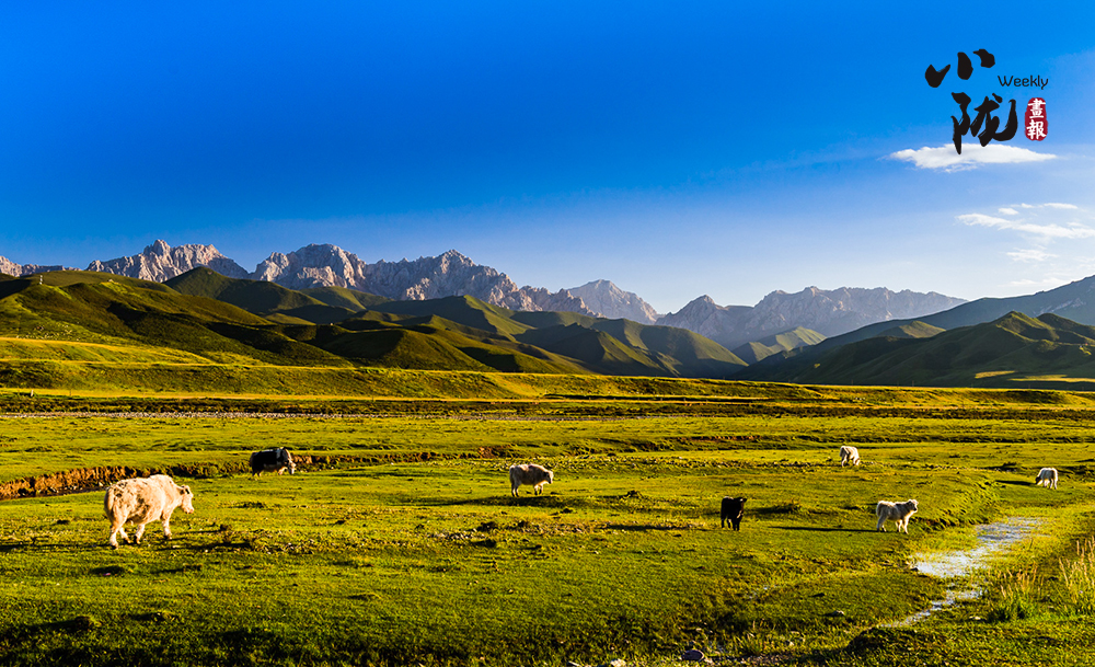 近處茵茵草場,滿是嫩盈盈的綠;遠處祁連山山脊起伏,黛綠色的基底上長滿山花。