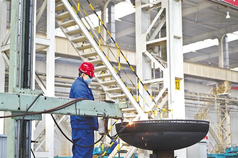 蘭石重裝煉化公司裝焊一車間生產(chǎn)繁忙。新甘肅·甘肅日?qǐng)?bào)記者 王占東