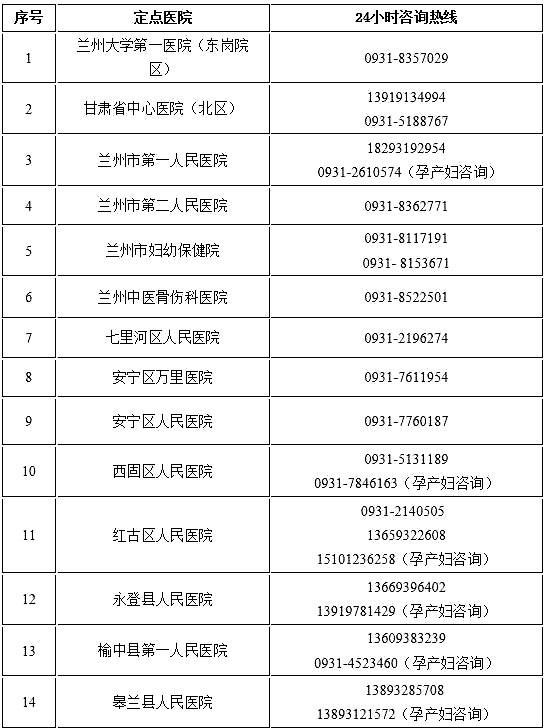 •蘭州市域“非綠碼”定點(diǎn)醫(yī)院24小時(shí)咨詢(xún)熱線(xiàn)•