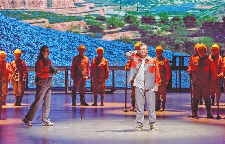 在兩個(gè)小時(shí)的演出中,全體演職人員以群像式表演,將蘭渝鐵路建設(shè)者的科技創(chuàng)新精神、愚公移山精神、大國(guó)工匠精神完美展現(xiàn)在舞臺(tái)上。“那座山,不太高,胡麻花開山上頭,山根根,開洞洞,火車鉆進(jìn)山里頭……”伴隨著悠揚(yáng)的謝幕音樂(lè),劇場(chǎng)內(nèi)爆發(fā)出了經(jīng)久不息的熱烈掌聲。