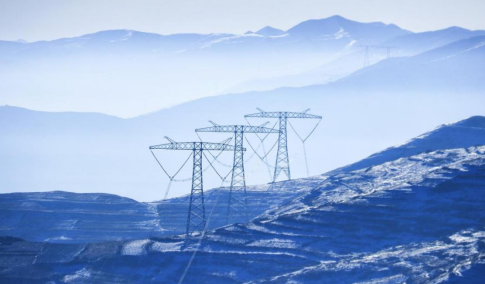 雪后的±800千伏青豫特高壓線路(甘肅段)