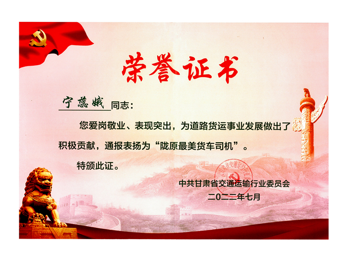 誠實(shí)守信奔跑在幸福路上的寧蕊娥也成為甘肅交通運(yùn)輸系統(tǒng)2023年獲得全國五一勞動獎?wù)碌膭趧诱摺?/p>