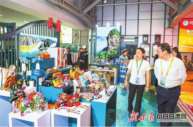 為更好推動優(yōu)秀傳統(tǒng)文化創(chuàng)造性轉(zhuǎn)化、創(chuàng)新性發(fā)展,全面展示甘肅省非遺、文創(chuàng)最新成果,推動文旅貿(mào)深度融合,我省以“交響絲路·如意甘肅”為主題,在進(jìn)博會人文交流展區(qū)搭建甘肅省展區(qū),展示蘭州黃河鐵橋、天水麥積山、平?jīng)鲠轻忌?、九色甘南扎尕那、張掖七彩丹霞、嘉峪關(guān)關(guān)城、隴南官鵝溝等甘肅省熱門景區(qū)圖片,全方位立體式向與會嘉賓展示甘肅厚重的文化底蘊(yùn)和豐富的旅游資源。