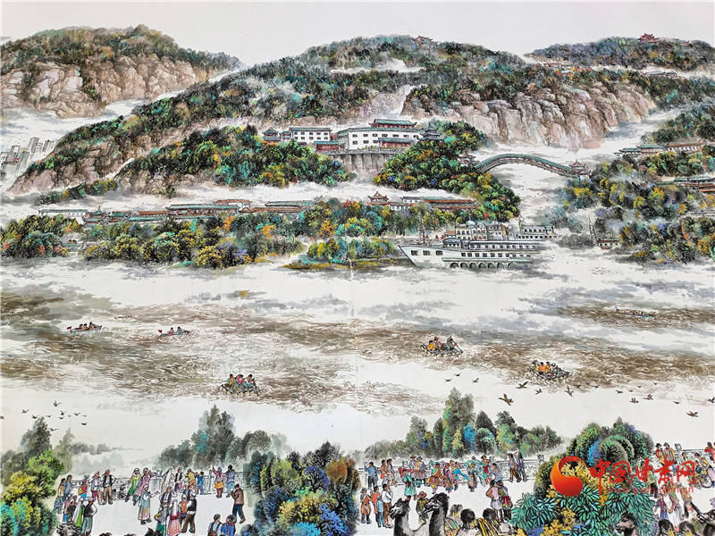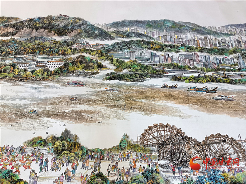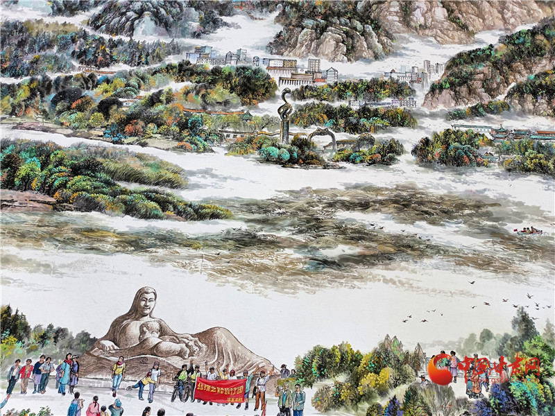 李建春說,畫面上共有500多個(gè)個(gè)性鮮明的人物,蘭州是多民族兄弟姐妹共同的家園,黃河是母親河,從這個(gè)角度,他描繪了黃河兒女的形象,大家生活在蘭州,也熱愛著蘭州。