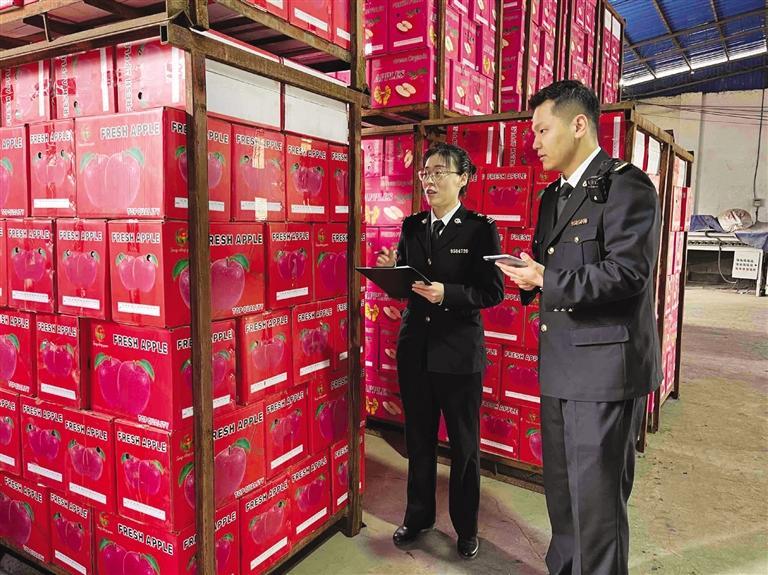 中國甘肅網(wǎng)12月13日訊 據(jù)蘭州晚報報道 12月12日,記者從蘭州海關(guān)獲悉,日前經(jīng)天水海關(guān)檢驗放行,由天水嘉威商貿(mào)有限責(zé)任公司生產(chǎn)的26噸鮮蘋果順利出庫裝運,經(jīng)公路運輸發(fā)往越南。大約72小時后,該批鮮蘋果將進(jìn)入越南消費市場。