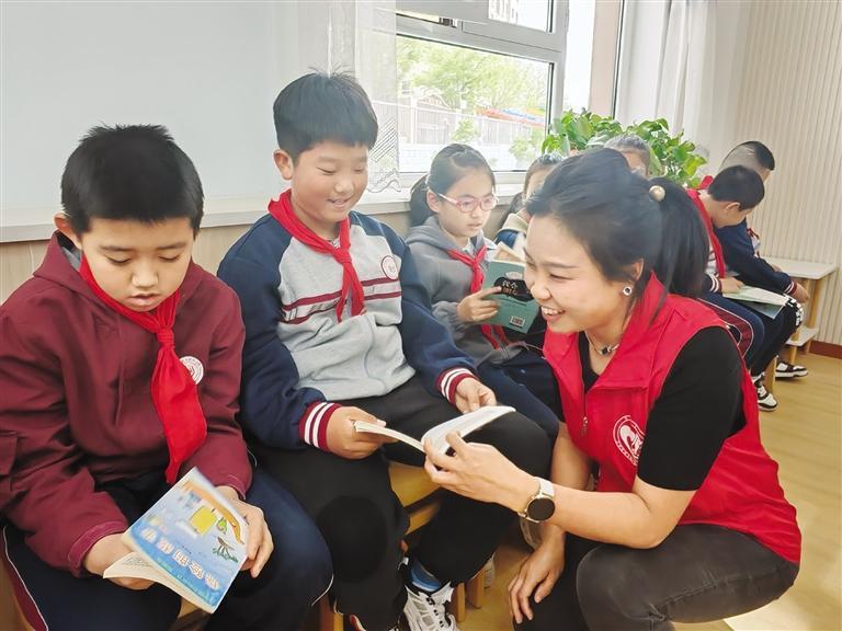聽(tīng)志愿者娓娓道來(lái),孩子們興趣漸濃,紛紛被書(shū)中精彩的故事和人物所吸引,社工王樹(shù)清、戎笑辰還和同學(xué)們結(jié)成了“讀書(shū)搭子”,約定定期分享好書(shū)和閱讀感悟。“讓孩子們?cè)诜窒砘?dòng)中激發(fā)閱讀熱情,可以更好地理解和感受書(shū)籍中的世界,對(duì)他們成長(zhǎng)非常有幫助。”王樹(shù)清說(shuō)。