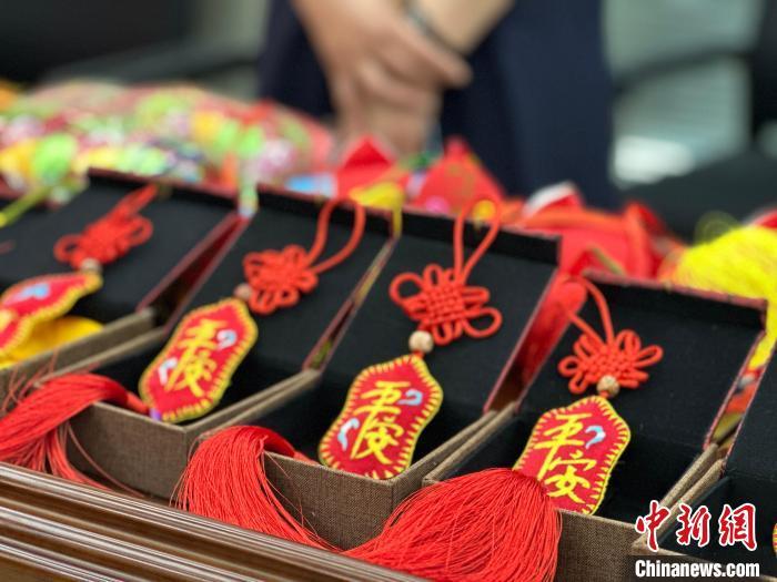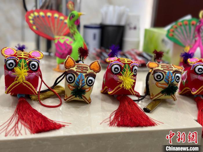 圖為發(fā)布會(huì)現(xiàn)場(chǎng)慶陽(yáng)香包展示。楊娜 攝