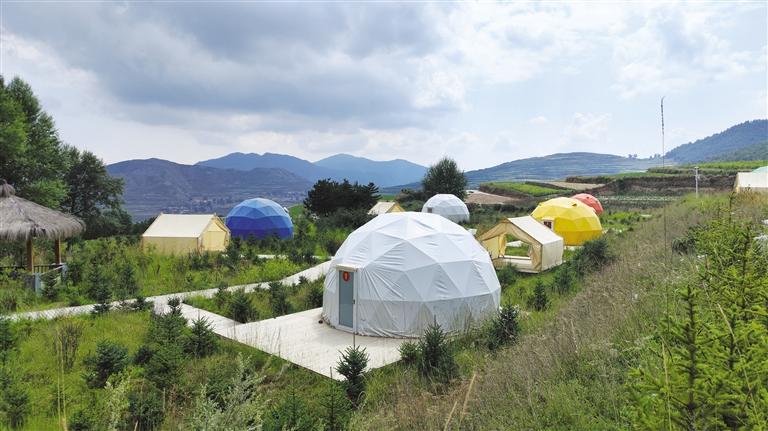 沿興隆山大道進(jìn)入滿目翠綠的原始森林,隨著彎曲的盤山公路走進(jìn)了哈班岔村時,首先映入眼簾的便是層層遠(yuǎn)山間科技范十足的民宿太空艙和造型獨特的露營帳篷,山坡上植被茂密,臨近山腳下的梯田色彩豐富,將一幅自然與人文相互映襯的鄉(xiāng)村畫卷展現(xiàn)在人們面前。