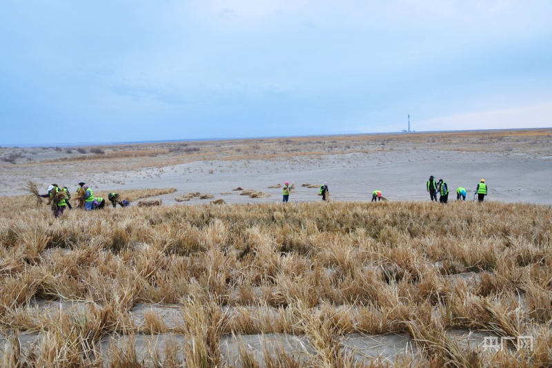 金塔縣防沙治沙現(xiàn)場(央廣網(wǎng)記者 李紅軍 攝)