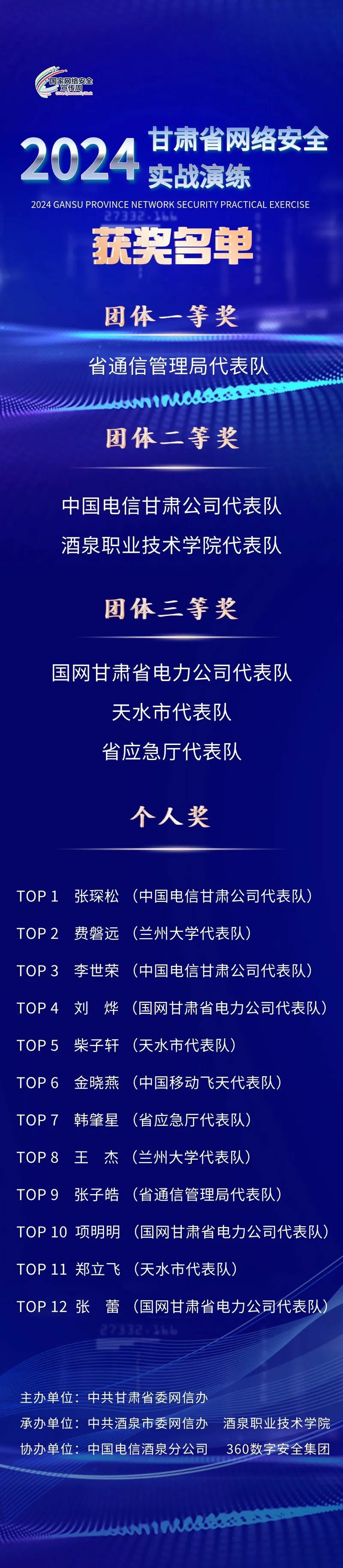 6月14日,2024年甘肅省網(wǎng)絡(luò)安全實(shí)戰(zhàn)演練在酒泉圓滿落下帷幕。來(lái)自全省各地、關(guān)鍵信息基礎(chǔ)設(shè)施保護(hù)部門(mén)、關(guān)鍵信息基礎(chǔ)設(shè)施運(yùn)營(yíng)單位、省內(nèi)高校、國(guó)有企業(yè)、銀行、部隊(duì)等領(lǐng)域的60支代表隊(duì)180名參演選手經(jīng)過(guò)激烈角逐,最終產(chǎn)生團(tuán)體賽一等獎(jiǎng)1個(gè)、二等獎(jiǎng)2個(gè)、三等獎(jiǎng)3個(gè),個(gè)人獎(jiǎng)12個(gè)。