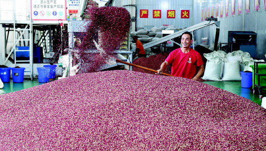9月10日,甘谷花椒集散交易中心工人正在加工收購(gòu)的花椒。甘谷花椒種植歷史悠久,所產(chǎn)花椒色澤鮮紅、粒大肉厚、麻味悠長(zhǎng)、清香濃郁,是國(guó)內(nèi)紅花椒中的精品。目前,全縣花椒種植面積22萬(wàn)畝,預(yù)計(jì)年產(chǎn)量1.6萬(wàn)噸以上,產(chǎn)值11.5億元以上,花椒樹真正變成了群眾致富的“搖錢樹”。 新天水·天水日?qǐng)?bào)記者李旺旺攝
