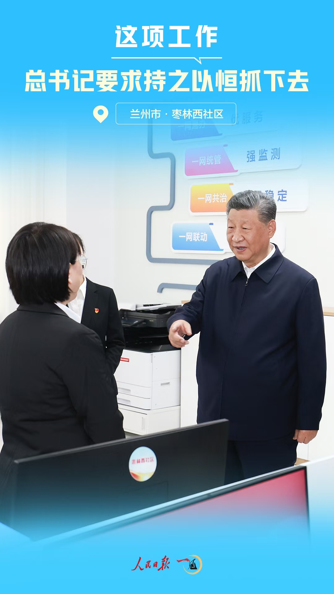 9月11日下午,習(xí)近平總書記來到甘肅省蘭州市考察。在安寧區(qū)棗林西社區(qū)黨群服務(wù)中心考察時(shí),總書記細(xì)致詢問了落實(shí)為基層減負(fù)等情況。