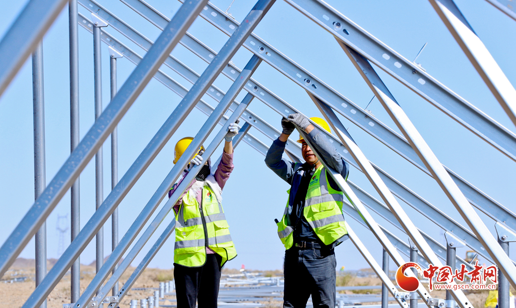 國慶假期,在甘肅省張掖市高臺(tái)縣羅城鎮(zhèn)北部灘的高臺(tái)隴和10萬千瓦光伏發(fā)電項(xiàng)目建設(shè)現(xiàn)場(chǎng),中國電建一線建設(shè)者們搶時(shí)間、趕進(jìn)度,力爭(zhēng)在年底前完成項(xiàng)目任務(wù),用奮斗助力新能源建設(shè)。