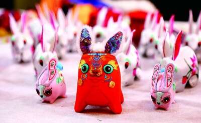 慶陽當?shù)亓鱾髦皇酌窀柙疲?ldquo;八歲學針線,十歲進繡房,進入繡房繡鴛鴦,百樣故事都繡上。”賀梅英便是七八歲開始隨母親學做刺繡,十三四歲便做得一手好女紅。她一有時間就做“?;?rdquo;,嘗試各種造型。幾塊簡單的布頭,幾縷絲線,在她的手里就像被施了魔法,變成了活靈活現(xiàn)的老鼠、蝴蝶、花卉……