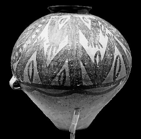 馬家窯文化最為常見,也最引人矚目的便是其精美絕倫、絢麗多彩的彩陶。流暢的平行線、優(yōu)美的弧線,靈動的水波、躍動的漩渦,鋒利的鋸齒、規(guī)整的網(wǎng)格、簡明的十字,游動的魚、跳躍的蛙、飛翔的鳥、栩栩如生的人面……筆鋒所至,宛如一幅幅圖畫,意趣生動。馬家窯文化彩陶的圖案從構(gòu)圖到畫工,無不顯示出馬家窯人的精巧構(gòu)思、嫻熟手法,以及對生活的仔細(xì)觀察和真摯熱愛。有研究者認(rèn)為,馬家窯彩陶是史前時期大眾藝術(shù)最完美的表達(dá)。的確,馬家窯文化彩陶在延續(xù)時長、分布范圍、絕對數(shù)量、相對比例、精美程度等多個方面,均達(dá)到了前所未有的高度,是中國史前彩陶的集大成者,堪稱5000年前盛開在黃土高原上的“玫瑰”。
