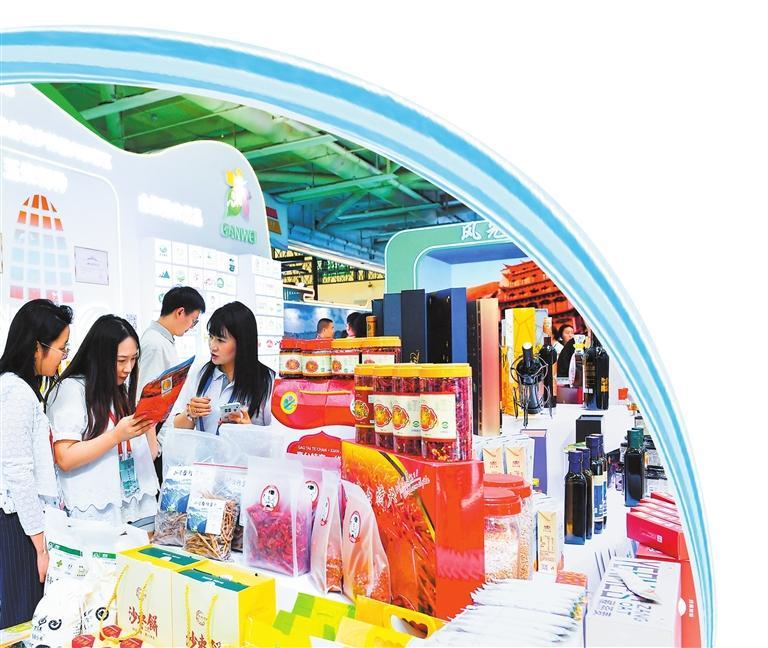 張掖館內(nèi),各類特色農(nóng)產(chǎn)品受到人們的青睞。 新甘肅·甘肅日?qǐng)?bào)記者 馬伊星
