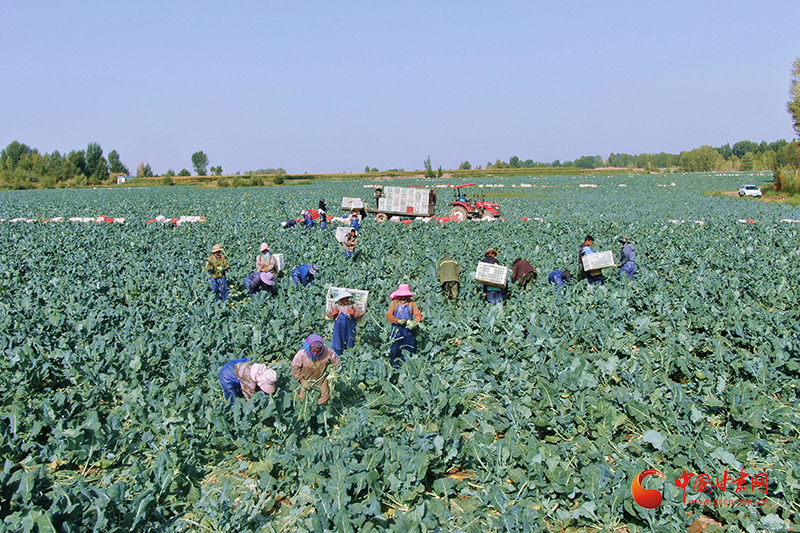 在蓼泉鎮(zhèn)絲路綠洲蔬菜分揀加工包裝配送生產(chǎn)線上,20余名工人正有序地對新鮮西藍花進行去葉、清洗、裝箱、加冰等處理。這些經(jīng)過精加工的蔬菜即將發(fā)往南方沿海城市,成為千里之外消費者餐桌上的美味。