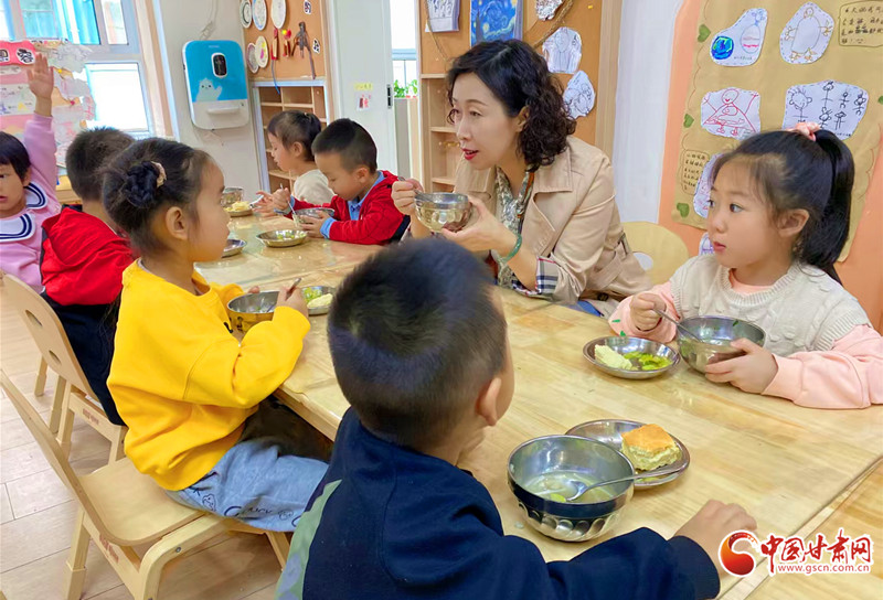 如今,孩子們每天品嘗著榮獲“蘭州市營養(yǎng)健康食堂”稱號的廚房精心烹制的餐品,在充滿愛與溫暖的小院中嬉戲玩耍。創(chuàng)意室里,整墻的手工玩教具見證著歲月的流轉;辦公室柜子里,發(fā)黃的祝賀卡片帶著甘南草原的泥土芬芳——那是送教途中,孩子們緊緊攥在手中的珍貴禮物。