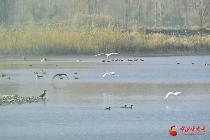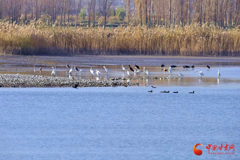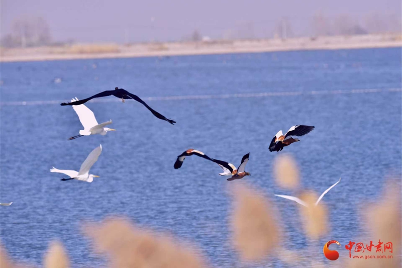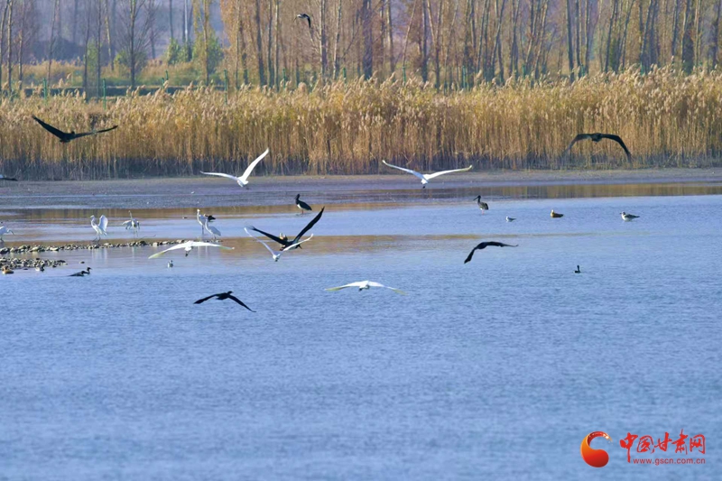 11月10日,初冬寒意漸濃,臨澤流沙河景區(qū)與雙泉湖水庫(kù)蘆葦叢間,響起遷徙鳥類的“集結(jié)號(hào)”。潔白的白鸛舒展雙翼、翩躚飛舞,成群麻鴨、鸕鶿緊隨而至,齊聚水域與葦蕩之間,為初冬景致添上靈動(dòng)一筆,引得市民游客駐足抓拍。