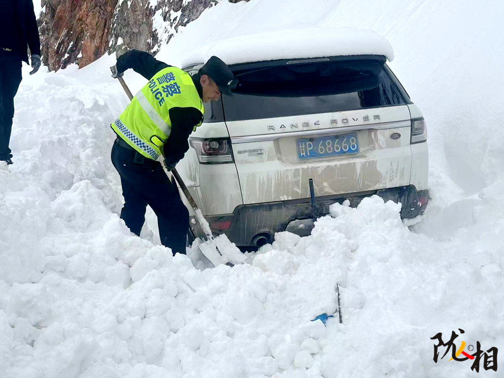 隨著江迭公路成為網(wǎng)紅自駕路線,旦知刀杰的工作增添了新的挑戰(zhàn)。2024年1月,一家5口被困在光蓋山積雪中,其中一位92歲老人出現(xiàn)高反癥狀。旦知刀杰頂著凜冽寒風(fēng)前往救援,為老人給氧、脫下自己的棉衣披在老人身上,并將老人背至警車處火速送醫(yī)。4月的一個夜晚,暴雪突襲,他帶領(lǐng)戰(zhàn)友在積雪中徒步2小時,連續(xù)奮戰(zhàn)9小時,安全轉(zhuǎn)移30余名被困游客。