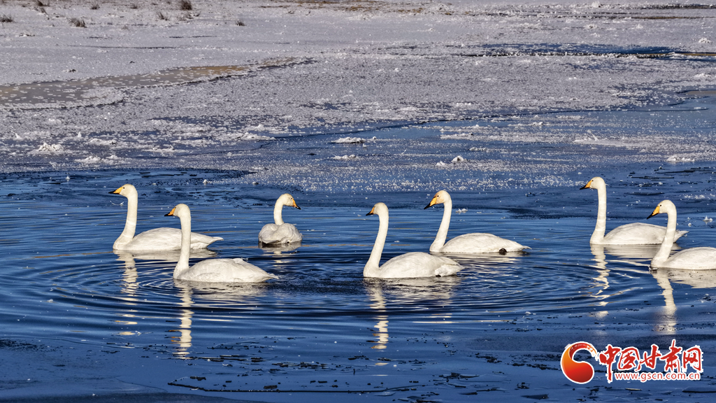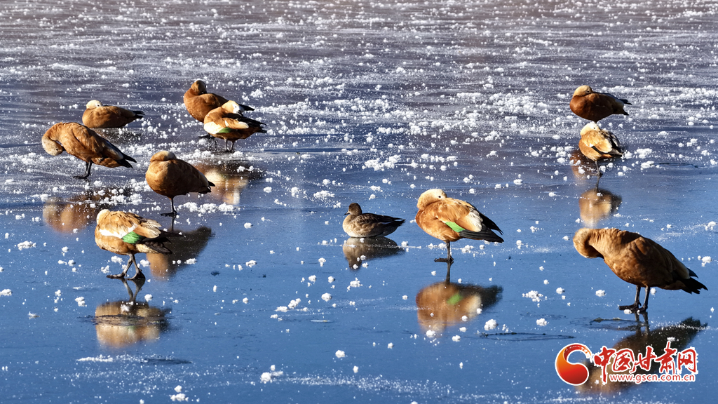 11月18日,初冬的甘肅山丹馬場(chǎng)鸞鳥湖濕地上,赤麻鴨、大天鵝、大白鷺三種珍稀鳥類悠然共處。它們或于冰面踱步,或在湖中游弋,或于淺灘佇立,共同構(gòu)成了濕地生態(tài)持續(xù)向好的生動(dòng)圖景。