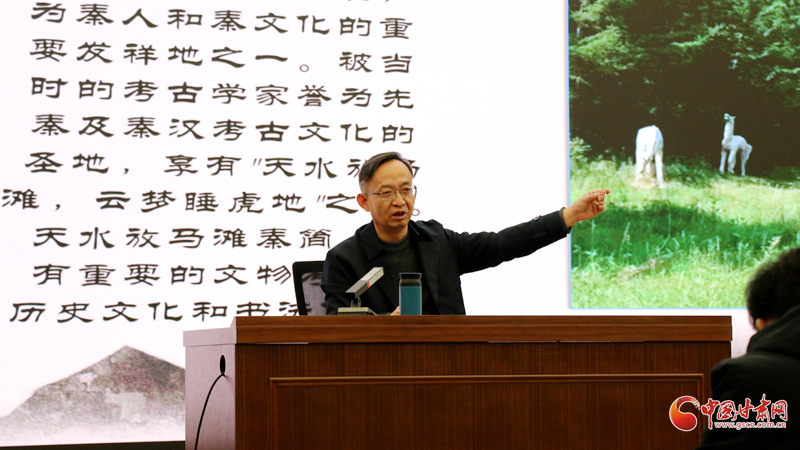 中國(guó)甘肅網(wǎng)12月12日訊(西北角·中國(guó)甘肅網(wǎng)記者 趙滿同)12月11日下午,“天水放馬灘秦簡(jiǎn)歷史文化及書法價(jià)值探賾”專題講座在蘭州大學(xué)榆中校區(qū)舉行。天水師范大學(xué)特聘教授王振宇受邀主講,帶領(lǐng)母校蘭州大學(xué)歷史文化學(xué)院二百余名師生穿越歷史時(shí)空,深入解讀放馬灘秦簡(jiǎn)這一秦文化瑰寶的歷史文化內(nèi)涵與書法藝術(shù)價(jià)值。