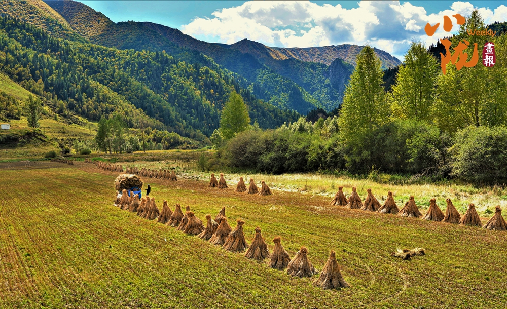 金沙峽依舊滿山蒼翠,似濃墨潑就。青稞地里,農(nóng)牧民忙碌地將成熟的青稞收割、扎捆、拉運,豐收的氣息彌漫著整個天祝大地。