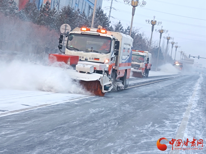 自接到氣象預(yù)警起,嘉峪關(guān)公路事業(yè)發(fā)展中心人員、機械在最短時間內(nèi)完成集結(jié),提前部署至各重點保暢路段嚴(yán)陣以待。降雪開始后,各單位迅速響應(yīng),按照“邊降雪、邊撒布、邊除雪”的原則,第一時間展開機械化除雪作業(yè),全力清除路面積雪。