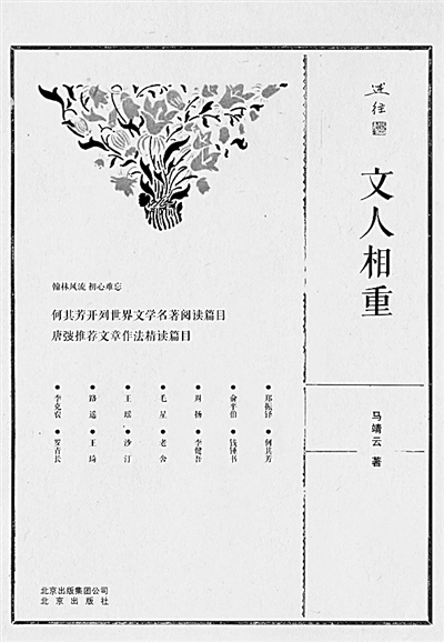 就本書作者馬靖云的潛質(zhì)和文筆來說,她不應(yīng)該只提供136千字的《文人相重》就戛然而止,她還應(yīng)該有續(xù)篇。而今,她雖然年過九旬,卻還思維敏捷,記憶鑿鑿,筆力遒勁。就文學(xué)所而言,依然以科研為視角,至少還有兩方面的人可書寫,而且有價值、有市場。一是從延安來的、從解放區(qū)來的老革命,如王平凡、唐棣華、朱寨、賈芝、力揚,他們或當(dāng)領(lǐng)導(dǎo),或為學(xué)者,稍加發(fā)掘,均可能得富礦;二是一大群中青年學(xué)者的涌現(xiàn),如曹道衡、胡念貽、劉世德、陳毓羆、蔣和森、錢中文、樊駿、袁可嘉、陳冰夷、柳鳴九、陳燊、董衡巽,等等,無不學(xué)有專攻,有故事,記錄下來,就精彩,甚至就是詩。