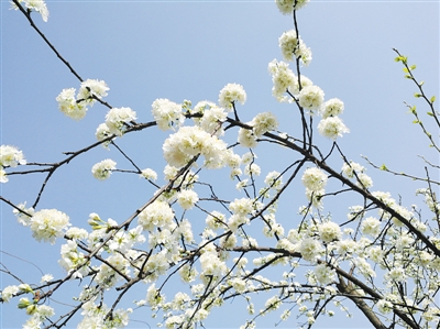這棵早李很矮小,還沒有我的個子高。我還有一棵李樹,是江安李,樹齡有15年,就高大多了。一個月以后,江安李就會開花了。不像早李開花這么羞澀,它一大團一大團地開,在藍天之下就像燦爛的積雪。這兩棵李樹的先后開花,正是春天巨人淺一腳深一腳踩過我的小花園留下的腳印,前一腳淺,后一腳深。無論深淺,雁過留影,都會濺起美麗的白霜或積雪。而且,這腳印還深深地留在每朵李花的子房里,先開的早李苦澀,后開的江安李甜美,它們記錄了春天里的掙扎和怒放。