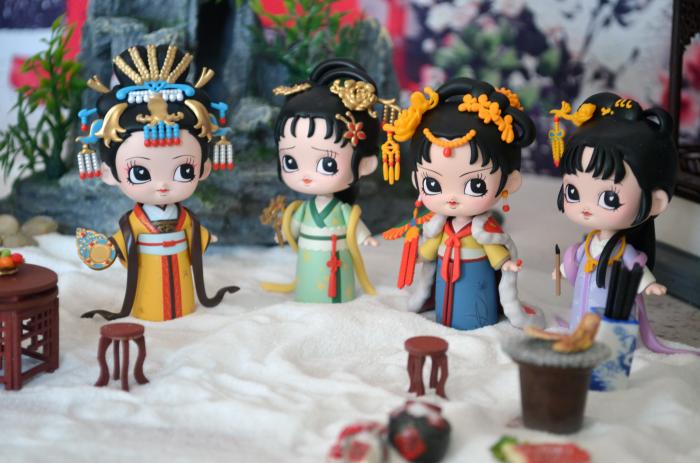90后楊喆是這些呆萌娃娃的主創(chuàng)者。她在接受中新網記者采訪時說,推出“《紅樓夢》盲盒”娃娃,是自己的夢想之一。