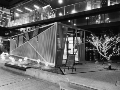 小眾書坊位于北京市南鑼鼓巷毗鄰的后圓恩寺胡同,周圍環(huán)境比較清靜。相比之下,因優(yōu)越的地理位置,雍和書庭周圍交通更為便利。沿著雍和宮橋向北走400多米,就可以看到位于地壇東門對(duì)面的雍和宮壹中心,走下樓梯,正對(duì)著一處四面落地玻璃的建筑,就是雍和書庭。在四圍的木格子和日本式枯山水裝飾下,這家玻璃書店顯得既有些隱秘又足夠開(kāi)放。走在北京春天的街頭,透過(guò)雍和書庭的燈光,讓人深深感受到閱讀帶來(lái)的寧?kù)o與溫暖。