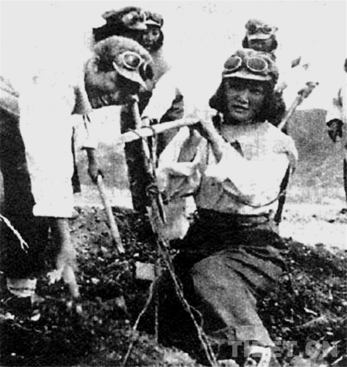 圖為《天路行軍1950——千名女兵徒步進(jìn)藏紀(jì)實(shí)》中插圖:搶修機(jī)場的女兵