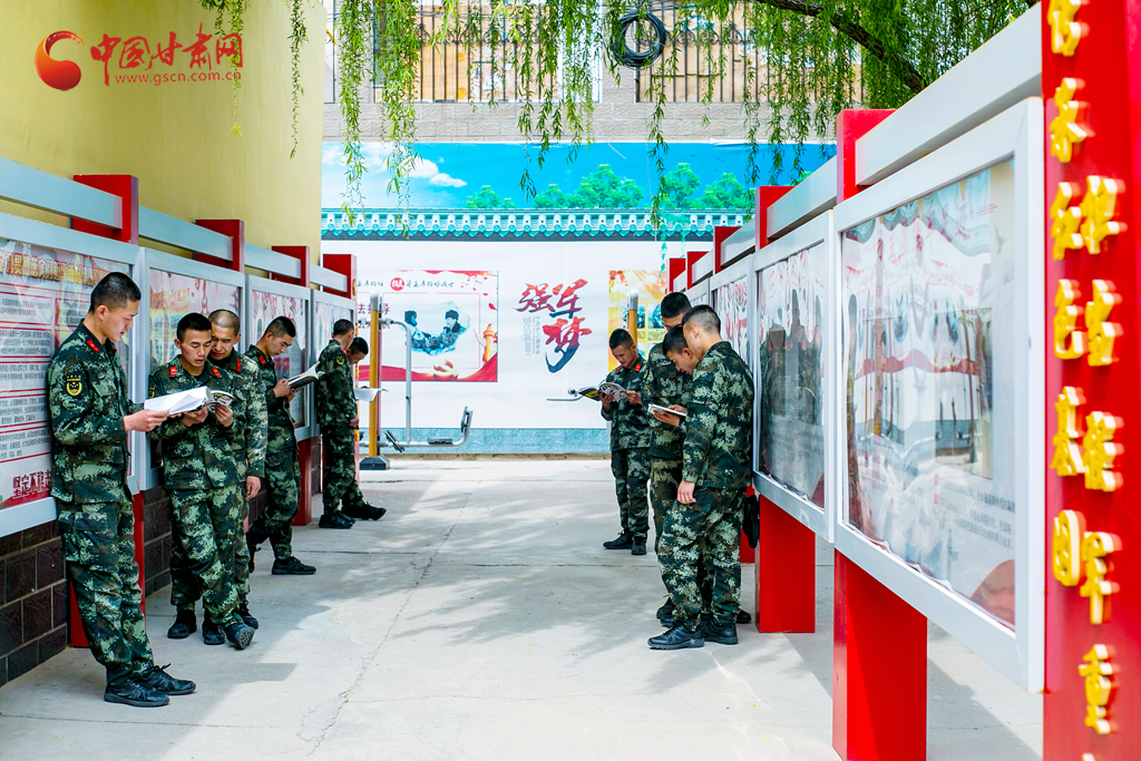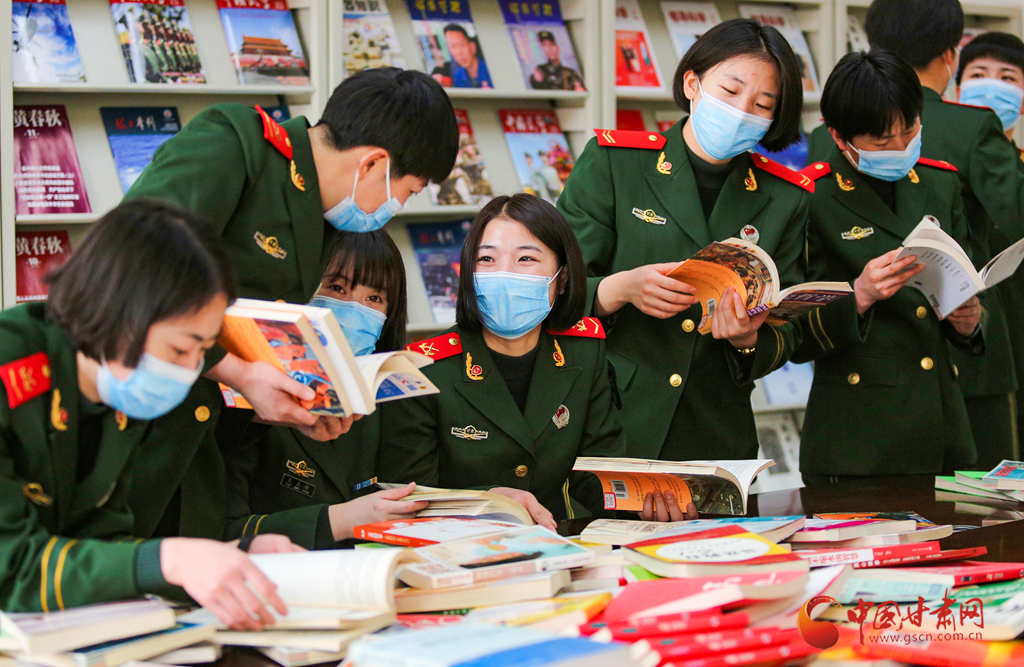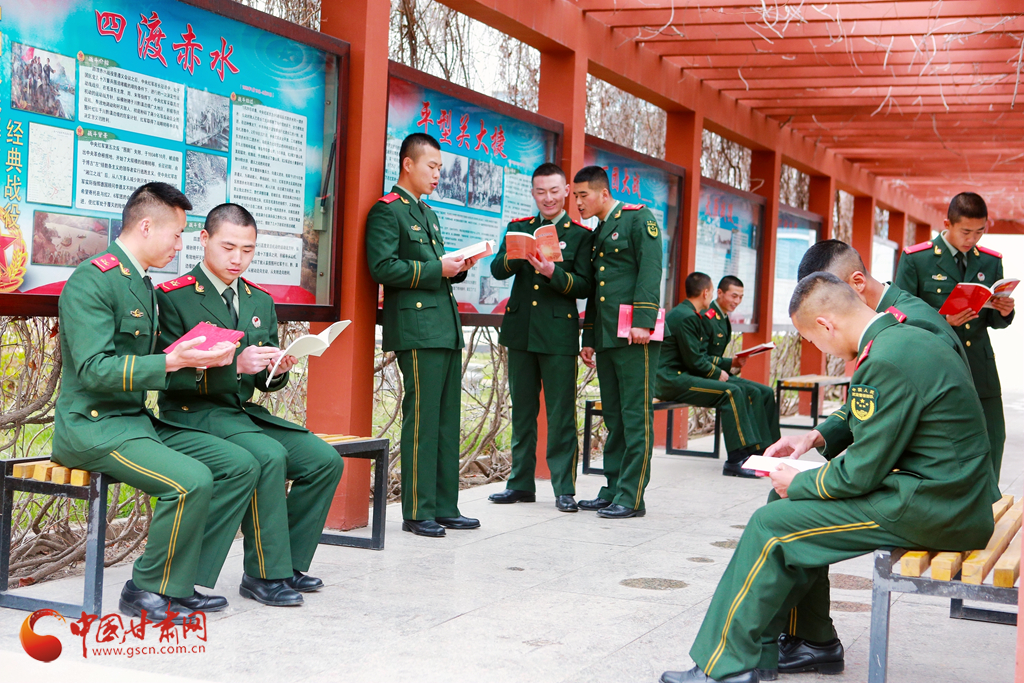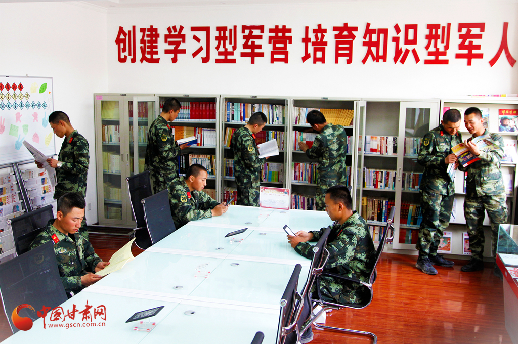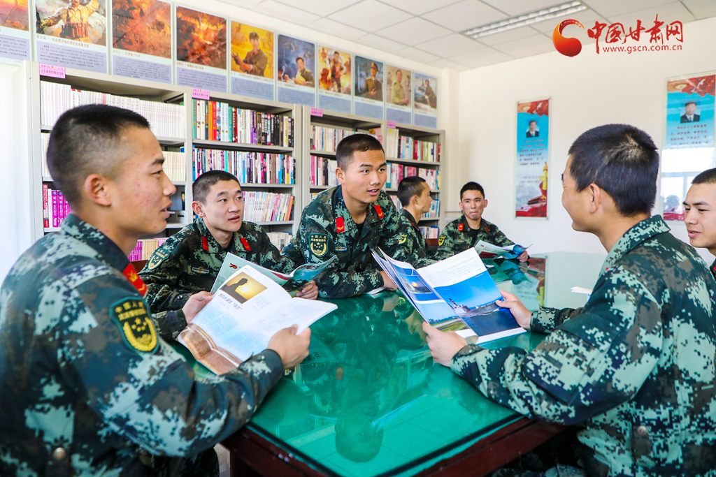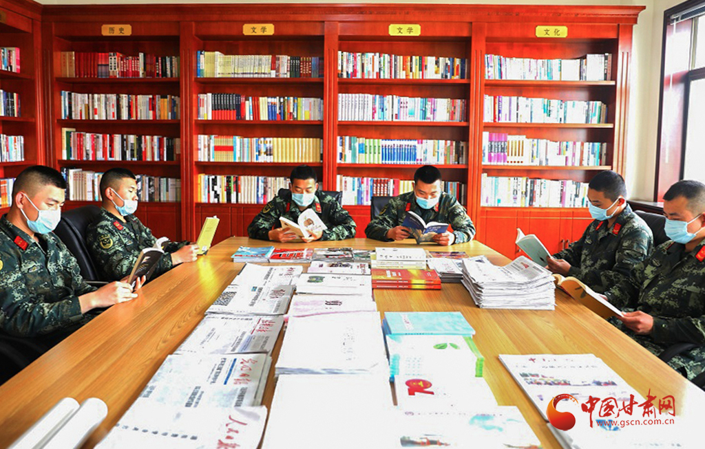 天水支隊官兵正在圖書閱覽室品讀紅色書籍
