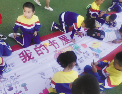 甘肅省張掖市甘州區(qū)某幼兒園的孩子們參加“我的書屋·我的夢”繪畫活動。
