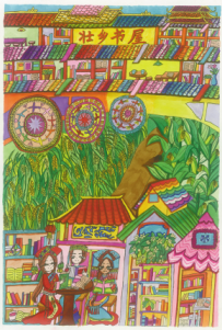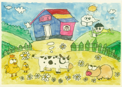 面對這部由中國少年兒童新聞出版總社出版的《“我的書屋·我的夢”——2019年農(nóng)村少年兒童閱讀實(shí)踐活動優(yōu)秀作品集》,讓人欣喜的是,它不但有文字,還有很多入選的畫作,孩子們運(yùn)用了大膽的色彩、大膽的想象、大膽的線條,恣肆地描繪著他們的夢和憧憬,這些夢根植于他們生活的山鄉(xiāng)曠野,又呼應(yīng)著遠(yuǎn)方、星辰與大海。我尤其記得其中的一幅,那是一座高聳的書塔,那種拔地而起、直上云霄的氣勢,是一種象征,是一種隱喻,是這一代孩子想站到巨人肩上的渴望,是他們對祖國明天最美好的祝福和期待,也是中華民族必將走向復(fù)興的昭示。