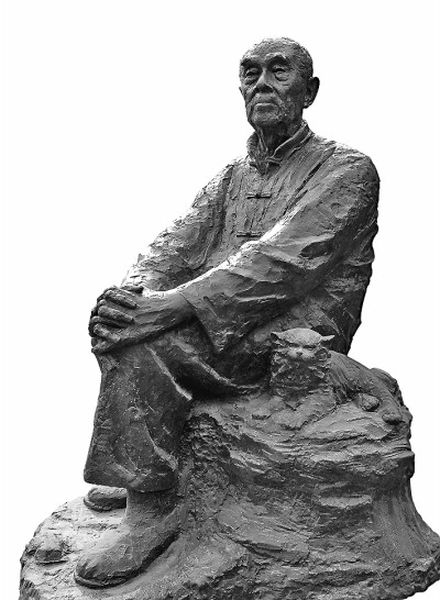 這尊坐像中,季羨林先生靜靜地坐在石頭上,雙手抱膝,目視遠(yuǎn)方,身旁臥著一只他喜愛(ài)的小貓。選自《紀(jì)峰雕塑札記》